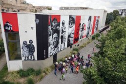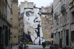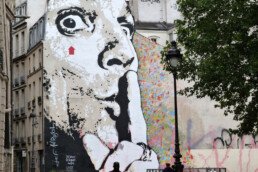 French stencil artist from the first wave of street art, he placed his first stencil on the walls of Tours in 1982. Since then, he has roamed the streets of many countries to paint or paste his characters, often depicted on a 1:1 scale. His work is now characterized by the significant use of black and white except for that famous red arrow, his trademark and “disruptive element”!