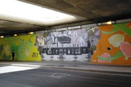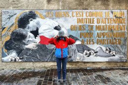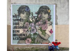 Not neglecting her first loves, Madame, an artist using various vintage materials (paper, wood, metal, fabric, etc.), deconstructs ancient iconography to make it speak today. Articulating her collage work between text and image, she constructs small-scale scenes in her studio, akin to “small stages” in volume, which she then translates into large posters to be displayed on the streets. The small “casettes” created in the intimacy of the studio then transform into true open-air theater scenes in public space.
